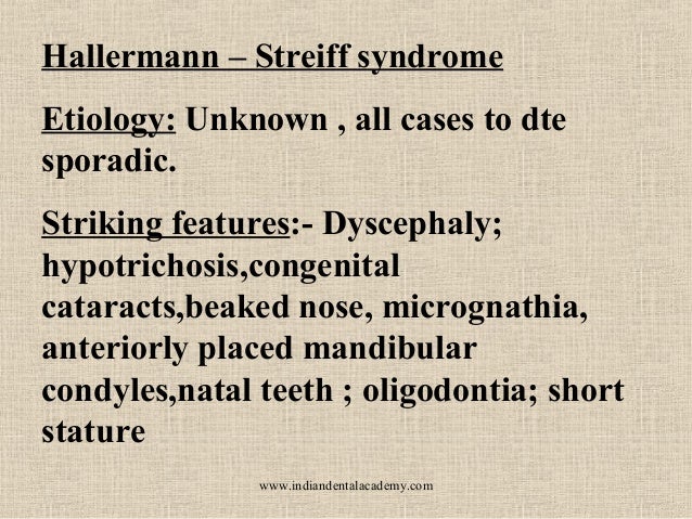 Hallermann-Streiff Syndrome . Orodental Findings In Hallermann-Streiff Syndrome Parikh S, Gupta S - Indian J Dent Res
